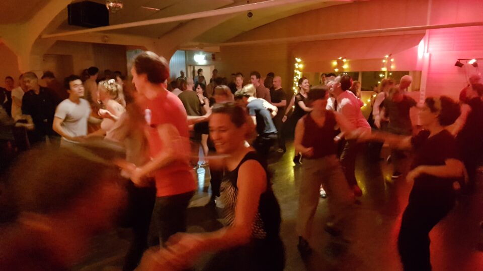 Följ med ut på dansgolvet! Medlemmar i föreningen DJ:ar swing-musik.