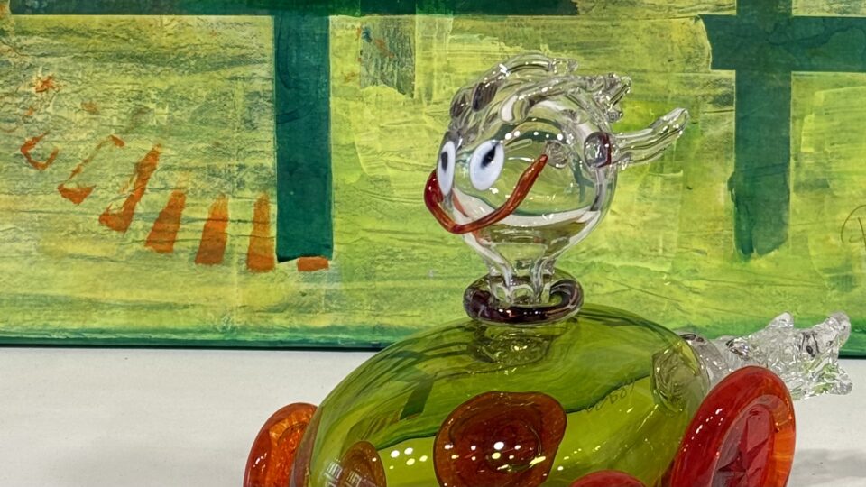 Välkommen till vernissage för ”Färgstarka former” som visar blåst glas av Åsa Gårdebäck samt glassmycken och mixed media av Pia Forsström.