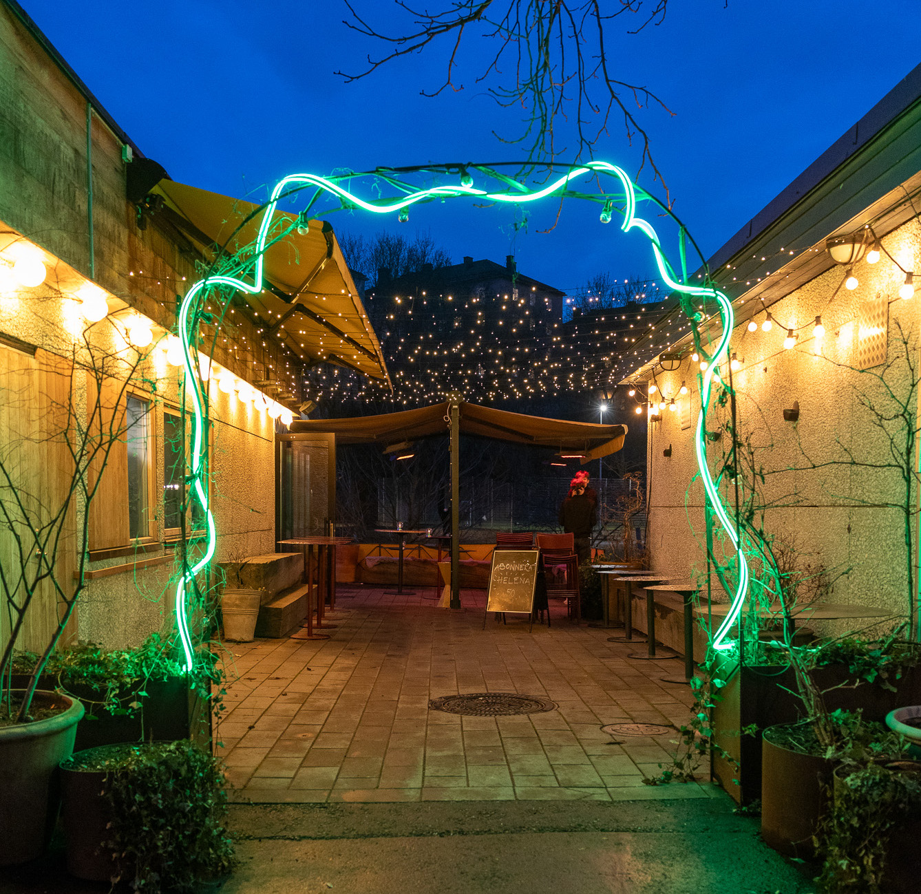Restaurangen är öppen och serverar mat och dryck både inomhus och ute på den stora uteserveringen i Lilla Blecktornsparken.